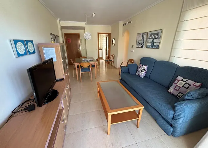 Strand Les Bovetes ist ca. 14 Minuten Gehweg von der 50 m² großen Ferienwohnung Puerta Palmar 4 Dénia entfernt, während sich Playa Les Bovetes in der Nähe befindet. Das Apartment bietet einen Außenpool und eine Terrasse für den Komfort der Gäste.